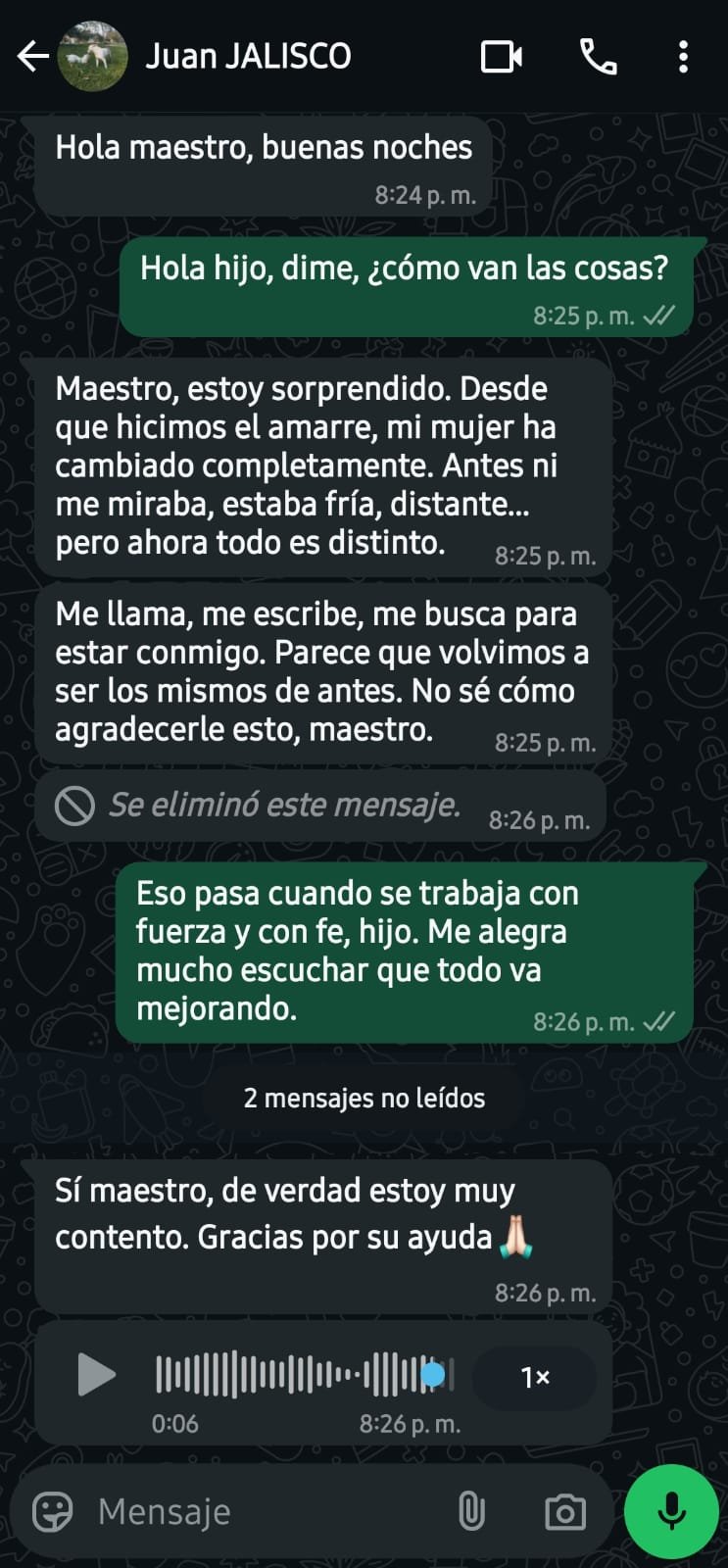 👉 Ya no gastes tu energía en dudas. Si tu problema es reciente, si apenas discutieron o se alejaron, puedo regresarte la paz y el amor en pocos días, con fuerza verdadera y resultados que se sienten.